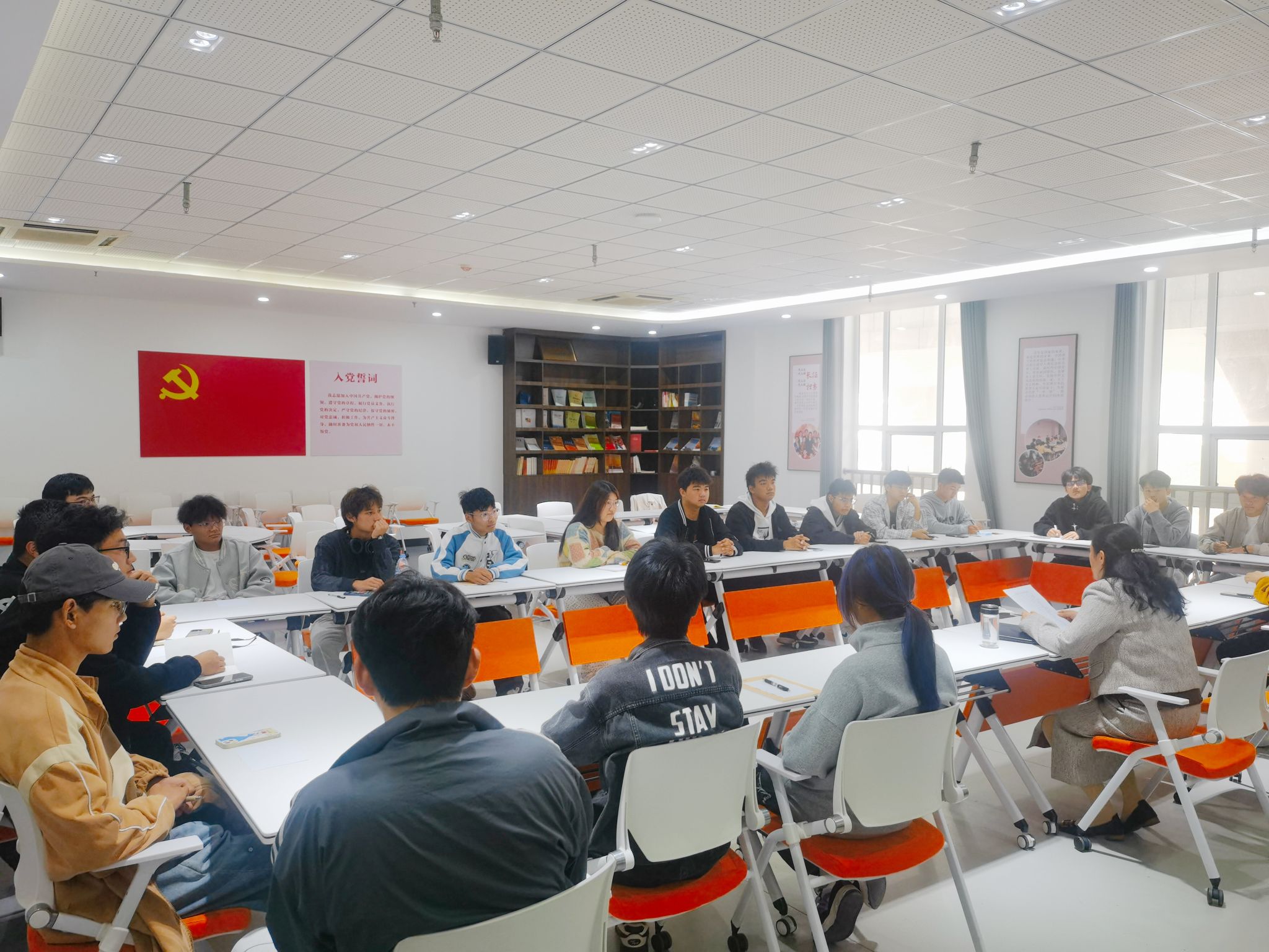 为促进师生沟通,切实提升教风学风,2024年11月1日,马克思主义学院在“大思政课”数字研学中心举行了本学期期中师生教学座谈会。会议由马克思主义学院副院长张家莉、思想政治教育教研室主任胡颖颖主持,2024级18名大一学生代表参会。