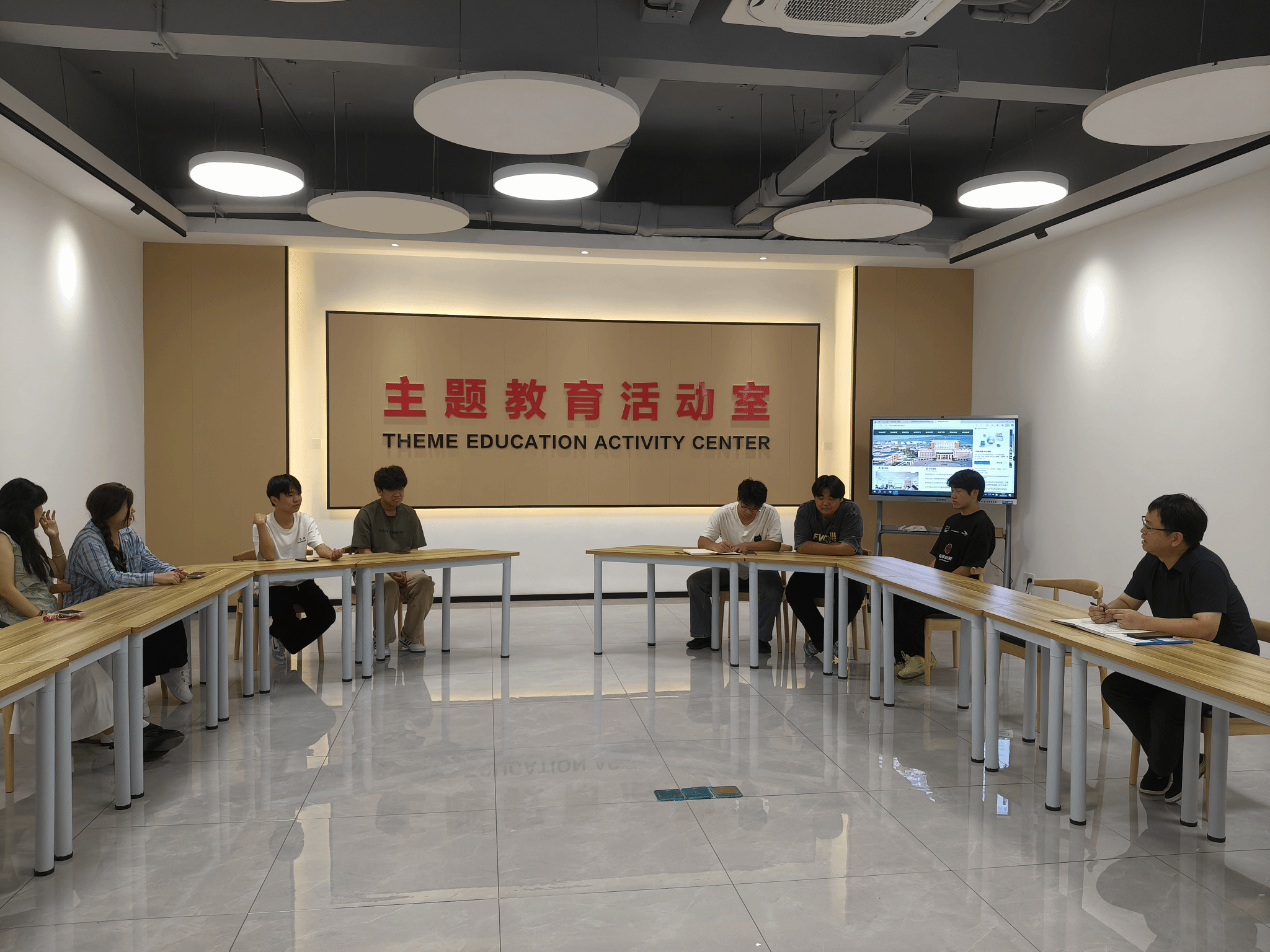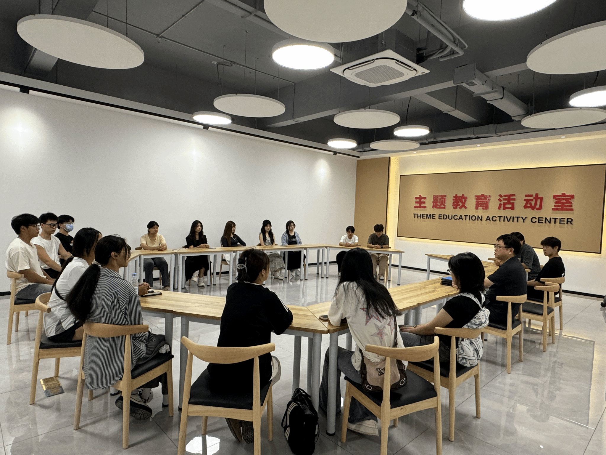座谈会前,朱亚春带领参会同学参观了学校“一站式“学生社区综合服务中心。