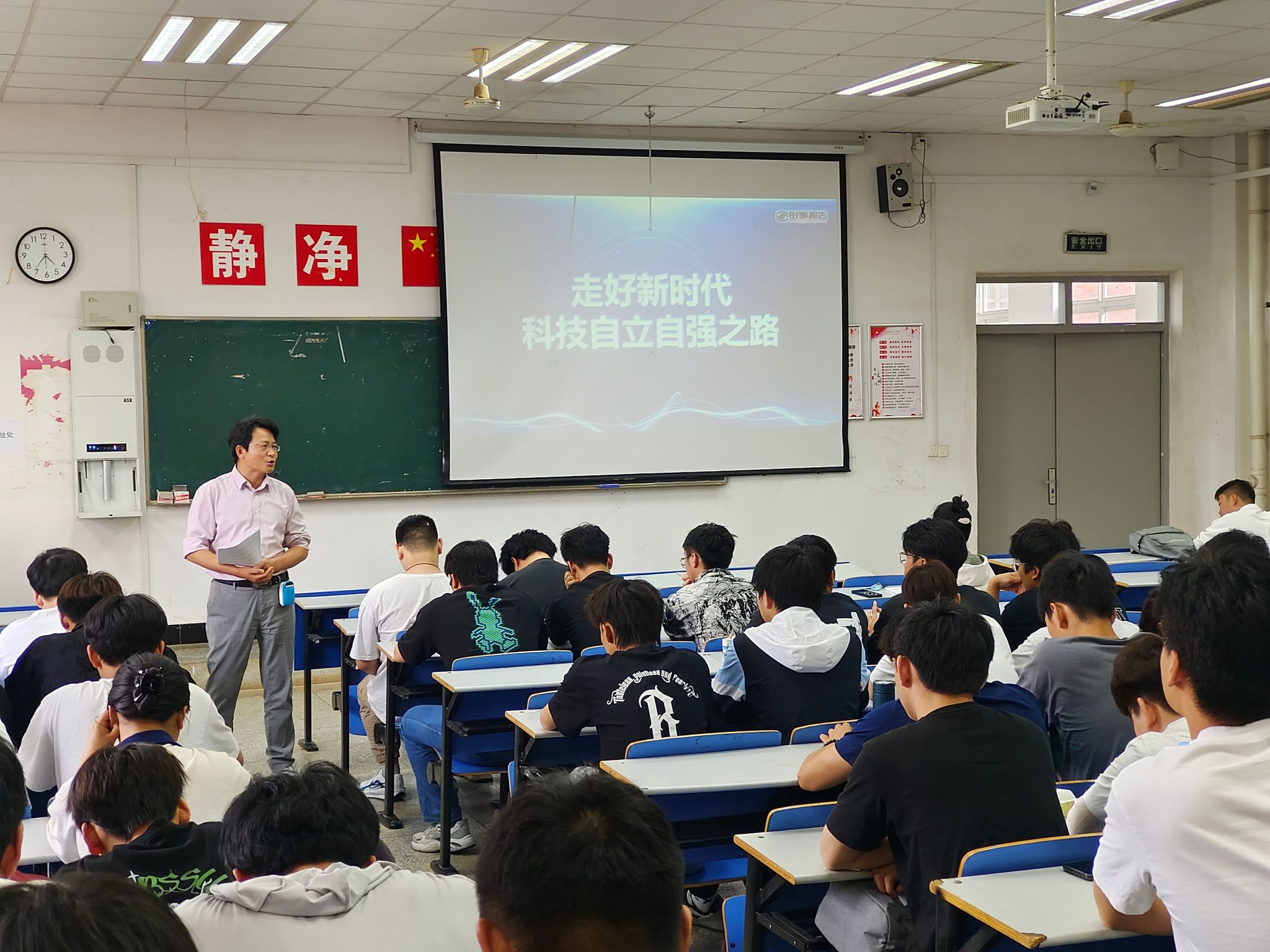 为深入贯彻落实习近平总书记关于科技强国的重要思想,提高新时代大学生的创新水平和实践能力,6月7日下午,校党委委员、副校长苏有良以“走好新时代科技自立自强之路”为题讲授形势与政策课,机械与汽车工程学院2022级200余名学生现场听课。
