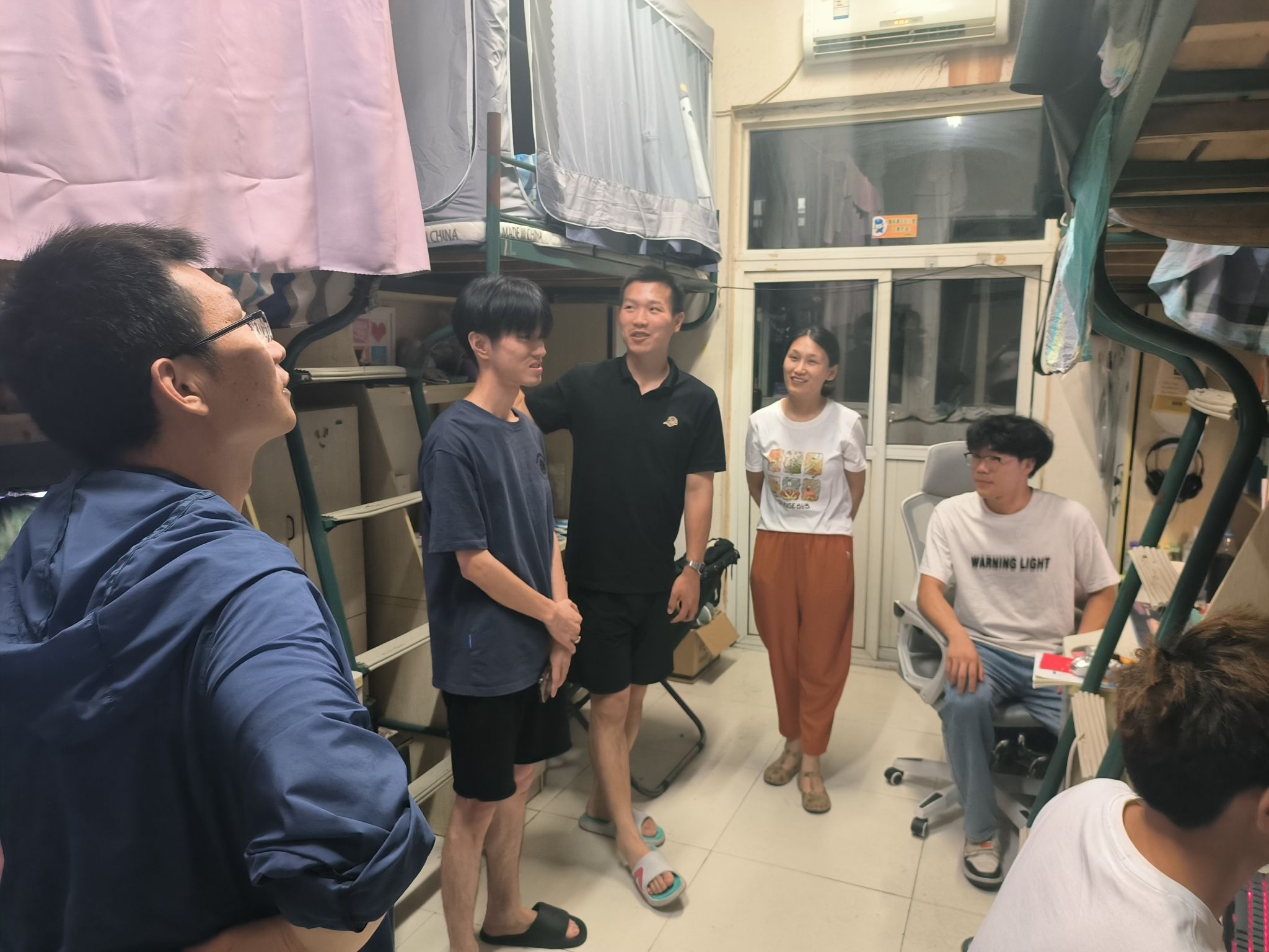 “开空调要经常开窗通风。”“大家都在学习,氛围真好。”“对学院教学管理有什么建议?”……6月14日晚,食环学院党总支书记张功会与值班教师周凯、学生党员唐良森等深入4号、6号楼部分宿舍走访,与学生“面对面”沟通交流。