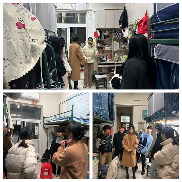 张功会一行与宿舍管理人员交流交谈,了解学院学生住宿情况,及时发现存在的问题和不足;走访了3301、5440、6206等十余个宿舍,查看宿舍卫生、用电等情况,叮嘱学生搞好环境卫生,共同营造干净整洁的生活环境;教育同学们共同抵制大功率电器,在宿舍安全问题上都要做个有心人,及时发现、及时消除,把安全放在第一位;勉励同学们团结互助,和谐相处。