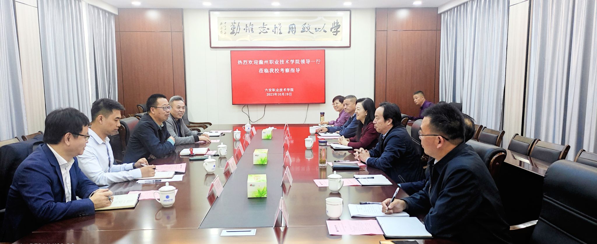 10月19日-20日,校党委委员、校工会主席李平权一行5人先后赴六安职业技术学院、安徽艺术学院,考察调研大学生思想政治教育及劳动教育、大学生美育及学生社团建设与管理、“一站式”学生社区建设等工作开展情况。