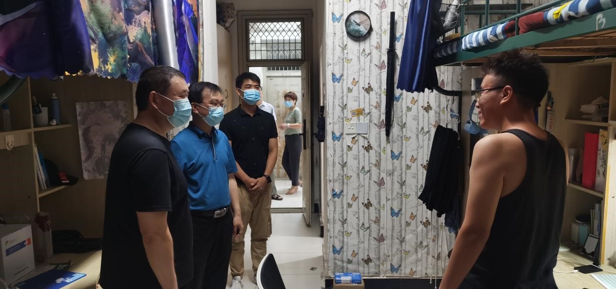 为进一步切实了解已返校学生的生活状况和学习需求,关心学生的思想状态和心理动态,确保在校学生健康生活、有序学习,9月7日晚,校党委委员、基础教学部主任王冬带队深入学生宿舍走访看望学生。食品与环境工程学院院长梁建军、管理学院党总支书记耿学刚、电气工程学院副院长燕相松等教学院部领导,学生工作处处长张军、团委副书记甄帅陪同走访。