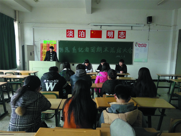 团长戴世静首先发言,对本学期记者团工作做了总结。指出各部门的工作情况及不足之处,表示各部门在接下来的工作中能再接再厉择优劣汰,争取更大的进步!会议还对下学期的工作做出了相应的安排,提出下学期开始将进行各部门预备换届及交接工作。随后副团张珂玮和马欢也做了补充发言,指出照片及新闻稿质量还有待加强,希望各部门能够注意。最后各部门部长及干事也依次上台发言,表示会在新的一年里积极进取弥补自身不足,期待记者团在2016年更加辉煌!