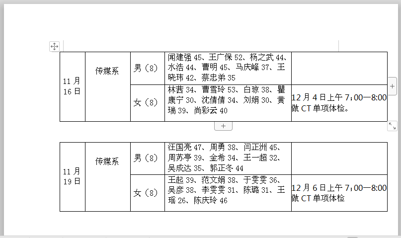 4、因性别和设备技术问题,女职工体检当天不做CT检查,延后至11月29日至12月7日进行,其它检查项目与男职工同步进行。