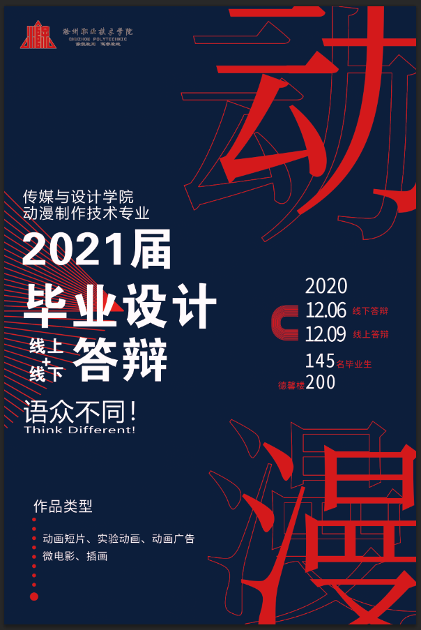 传媒与设计学院动漫专业2021届毕业设计答辩通知