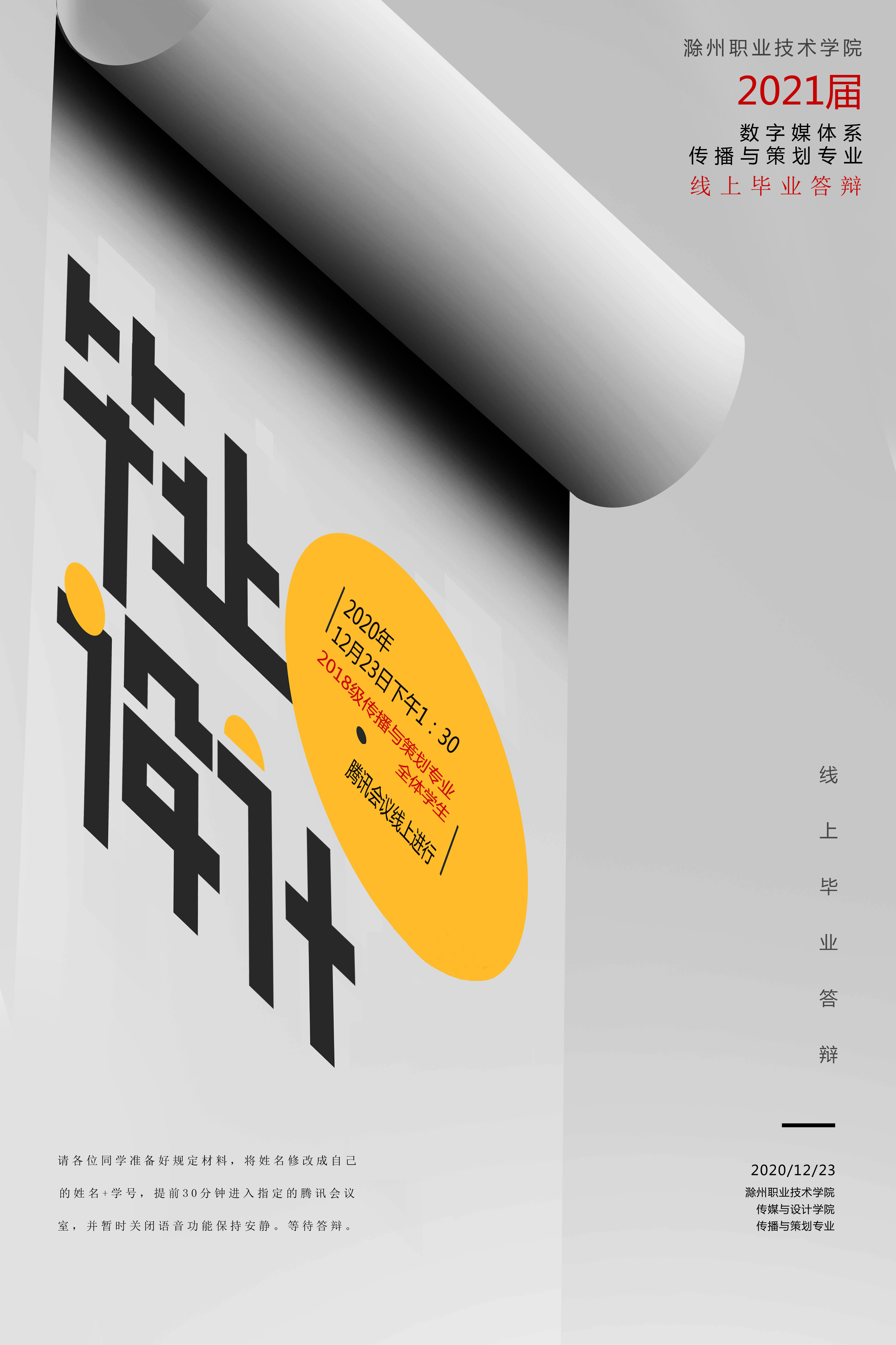 传媒与设计学院数字媒体系2021届传播与策划专业毕业设计答辩通知