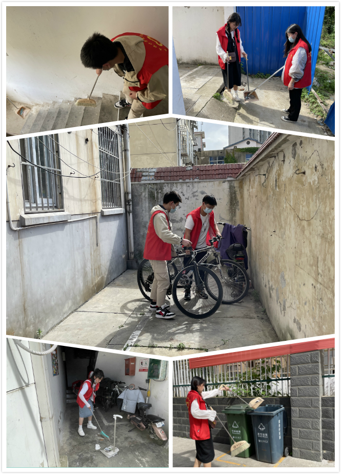 在社区工作人员的带领下,我院党员志愿者们来到无物业打扫的居民住宅楼,对其进行卫生清理。志愿服务活动现场,大家身着红马甲,手拿扫帚、簸箕、垃圾夹等清洁工作,对楼梯、走道等场所的各类垃圾展开大扫除。此外,志愿者们相互合作,对小区内乱停乱放的电动车、自行车进行规范停放。经过近一个小时的劳动,该住宅楼的面貌焕然一新,党员志愿者们用汗水与行动诠释着使命与担当。