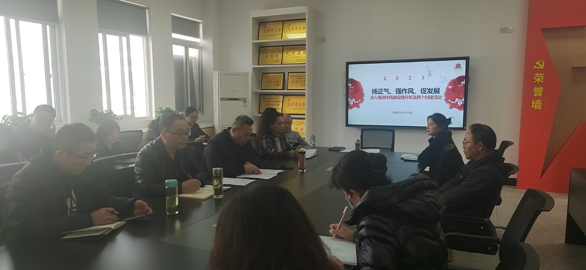 为全面贯彻党的二十大精神,进一步落实中央、省、市关于作风建设的部署要求,传媒与设计学院党总支于3月27日下午召开“‘扬正气、强作风、促发展’深入推进作风建设提升年及两个创建活动”会议,学习《beat365中国唯一官方网站深入推进作风建设提升年行动方案》有关内容。会议由学院党总支书记王广保主持,全体教职工参会。