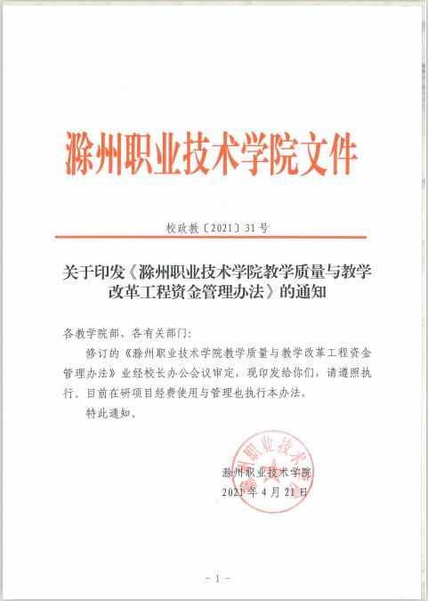 校政教〔2021〕31号 关于印发《beat365中国唯一官方网站教学质量与教学改革工程资金管理办法》的通知.pdf
