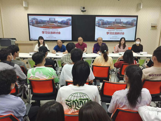 近日,传媒与设计学院举办了动漫制作技术(中外合作)专业强化英语课程学习的交流研讨会,会议由传媒与设计学院院长闻建强主持,继续教育学院院长李永泉、中外合作办学办公室负责人李学军、数字媒体系主任李雯雯、动漫制作技术专业负责人范文娟、班主任薛梦琪及中外合作班级全体学生参与此次交流研讨会。