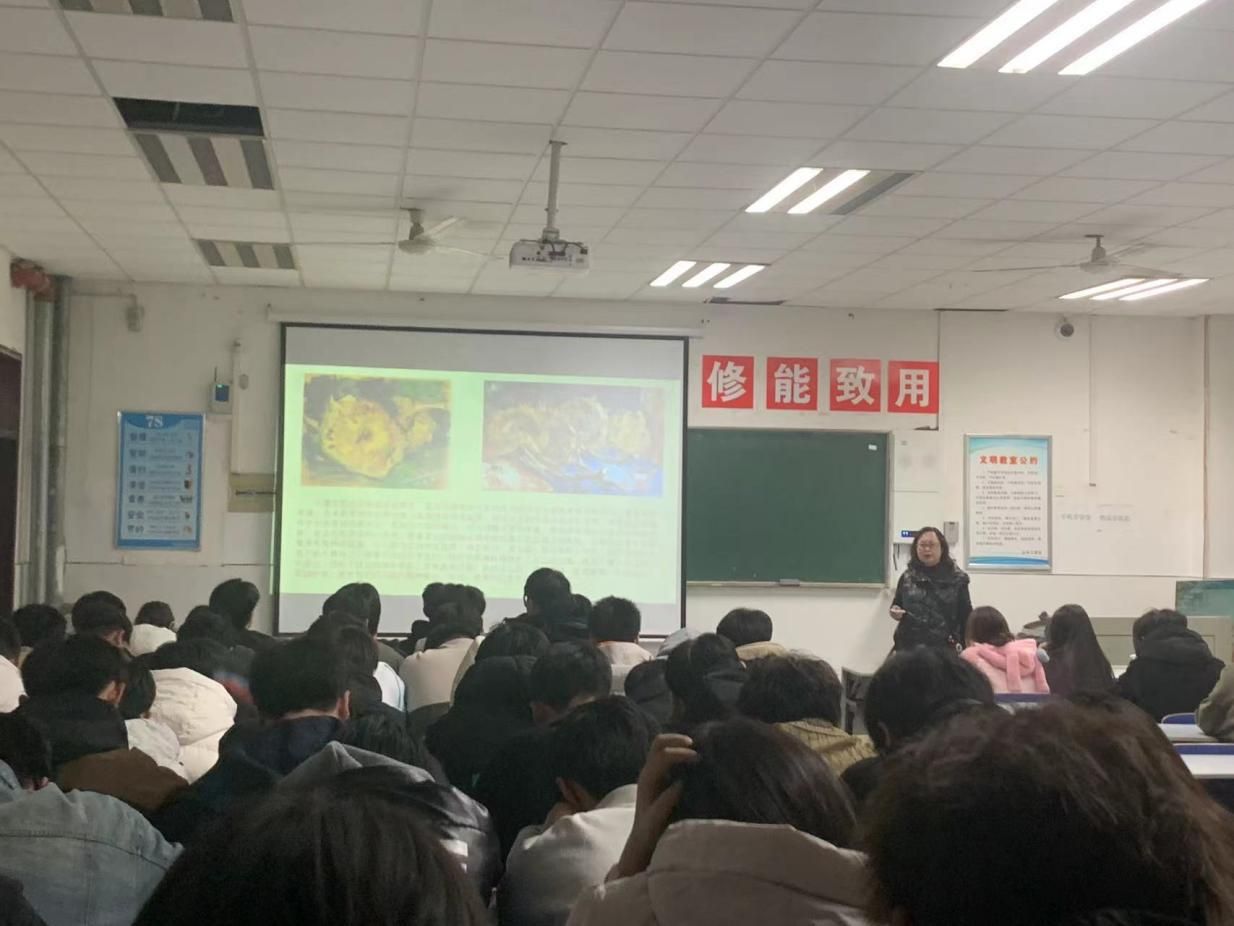 整场讲座座无虚席,精彩处不断爆发出热烈地掌声,同学们对十九世纪人类杰出的、向日葵画家梵高的艺术风格和系列画作有了更深地认识和了解。