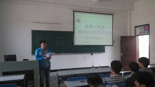 四月十四日中午,传媒工程系团总支在德馨楼102教室举行了先进团支部候选支部评比活动。各班团支部以现场展示和演讲等形式进行工作汇报,分别从团支部建设情况、开展思想教育工作情况、促进学风建设方式、特色活动介绍等方面全面展示支部风采,分享团支部建设心得。各团支部代表以饱满的情感带领大家走进一个个团结向上、朝气蓬勃的集体。接着在座的学干进行了公平无记名的投票。最终,四个团支部荣获优秀团支部荣誉称号。