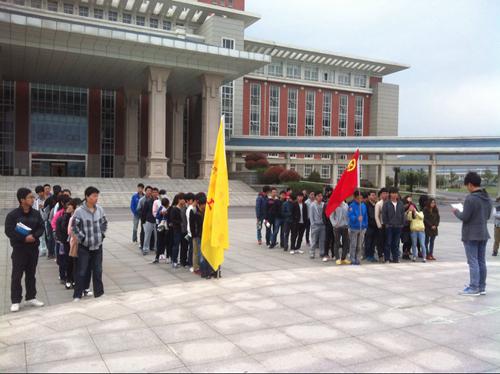 2014年3月31日早上6点50分,传媒工程系团总支在校广场上举行了庄严隆重的升旗仪式。团干和各团支部同学参加了本次升旗仪式。6点30分,天灰蒙蒙的,但两个年级的同学已经陆续来到操场并自发有序地排队,同学们个个身着整洁,抬头挺胸,等待着国歌的响起。