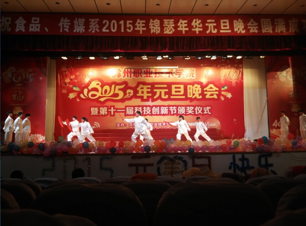 2014年12月30日晚,由传媒工程系和食品系共同举办的2015年锦瑟年华师生元旦联欢晚会在我院大礼堂隆重开幕。系领导莅临现场与我系学生共同欣赏晚会。 本次晚会以“锦瑟年华”为主题,节目精彩纷呈,一场独特的,欢乐的开场舞拉开了晚会的序幕,随后一场哑剧《较劲》,晚会成了欢乐的海洋,同学们脸上洋溢着青春的笑容。搞笑话剧、歌曲、舞蹈等将晚会气氛一次又一次的推向高潮。悦耳的歌声和曼妙的身姿演绎了这个炫舞飞扬的夜晚,激情的掌声和愉快的欢呼声点缀了这个流光溢彩的夜晚。