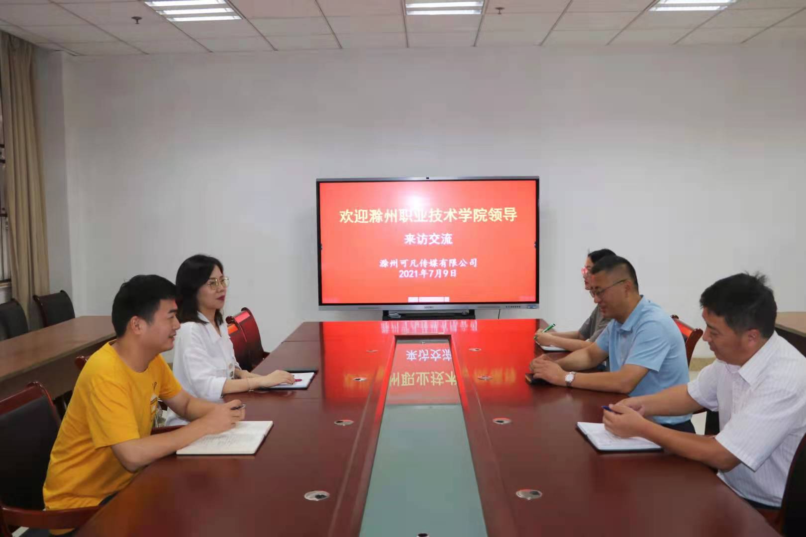 7月9日上午,校党委副书记、校长许雪峰率队深入滁州可凡传媒文化有限公司考察调研,招生就业处相关人员陪同调研。滁州可凡传媒文化有限公司总经理雍波热情接待了许雪峰一行。