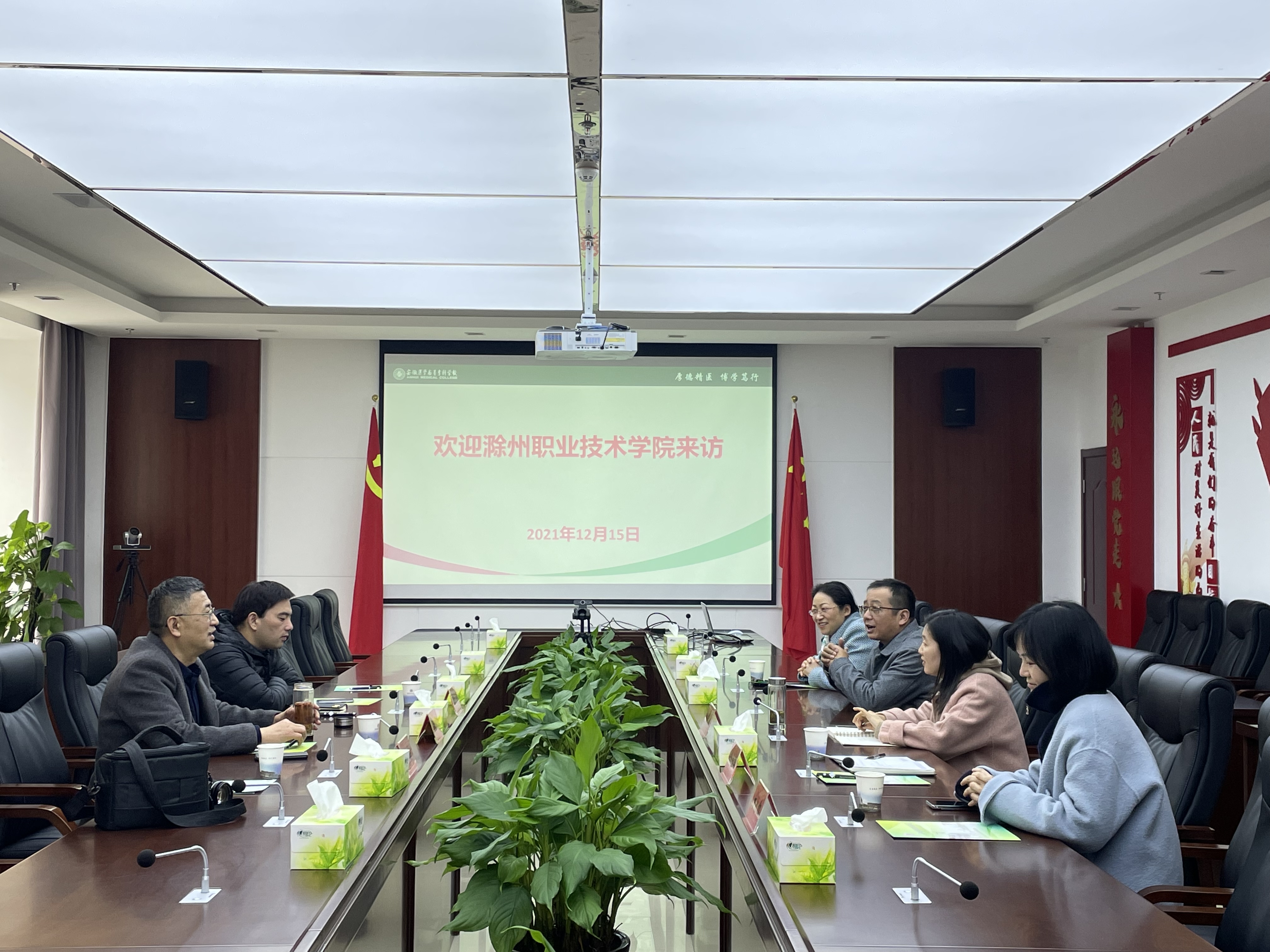 王劲松对365官网代表到访表示欢迎,并简要介绍了安徽医学高等专科学校办学历史、专业建设、特色发展、职教集团建设等情况,分享了该校在加强校校合作、中高职衔接方面的经验和做法。王劲松希望双方加强沟通与协作,抓住国家大力发展职业教育的机遇,立足新时代、顺应新形势,共同推动学校高质量发展。