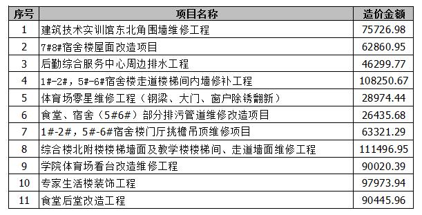 学院11个暑期校内基建维修改造项目招标采购情况公告