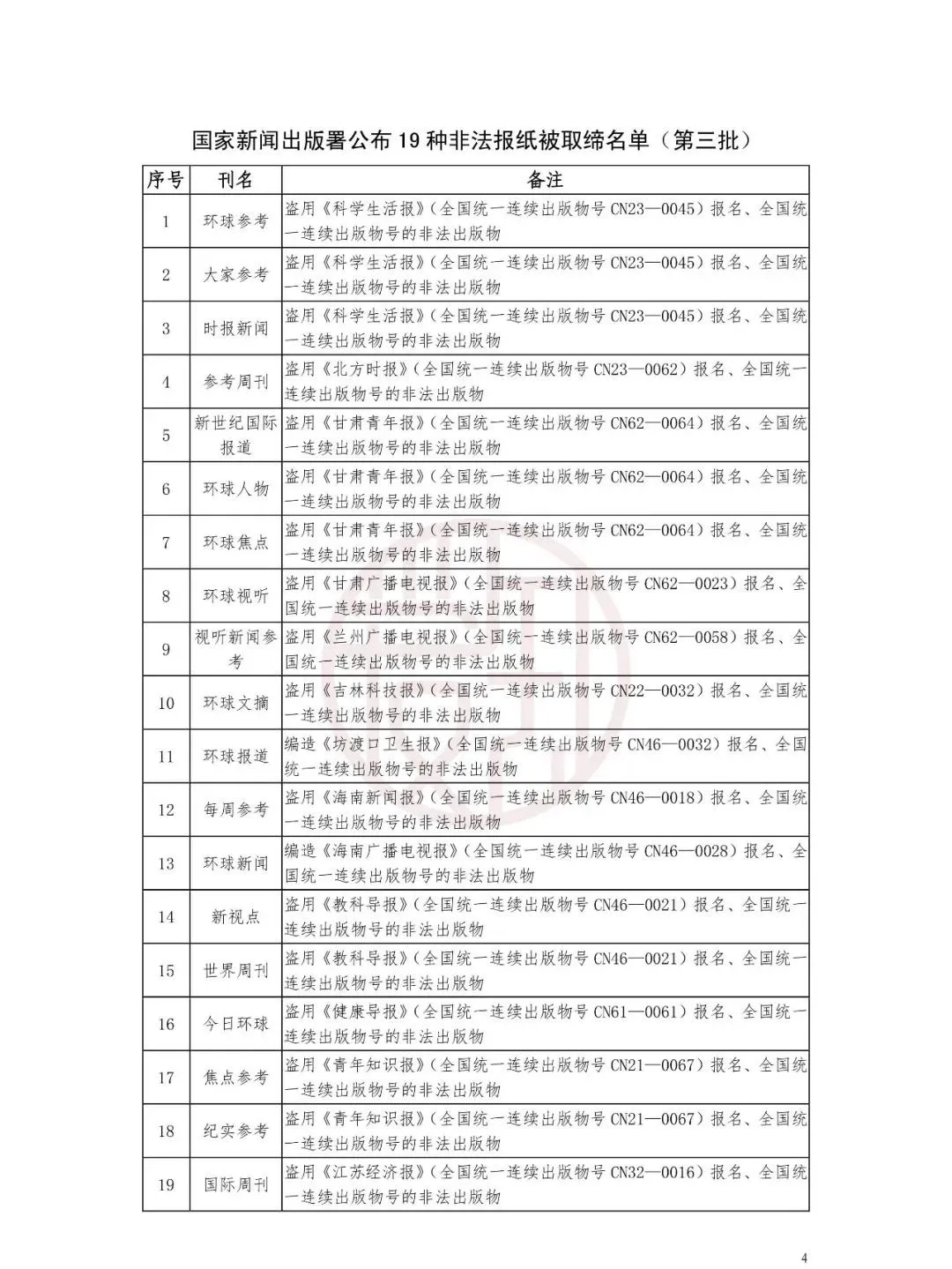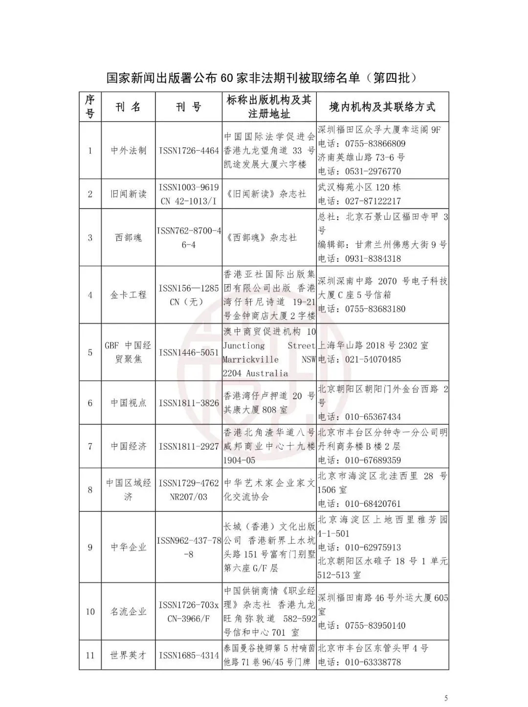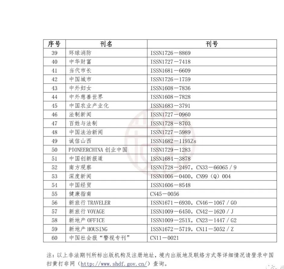 国家新闻出版总署、全国“扫黄打非”办公布的部分非法期刊目录(来源:国家新闻出版总署转载:爱知学者)