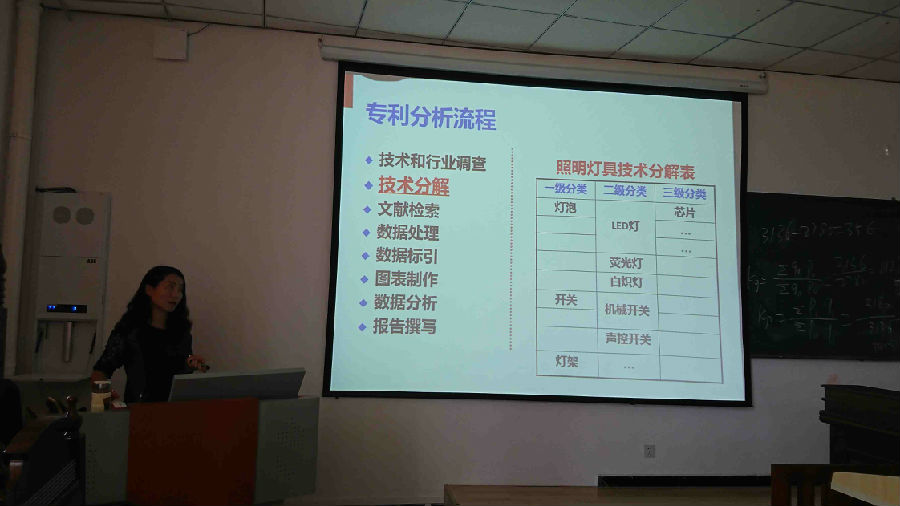 5月31号下午,科研处在南阶201教室开展了题为“专利信息检索预分析”专题科技讲座,讲座由科研处李爱红老师主持,食品与环境工程系周玲玲副教授主讲,来自食品系、机电系、土木系的青年教师与元大学生科协、创新协会以及机电系、汽车系对专利申报感兴趣的40多名学生聆听了讲座。