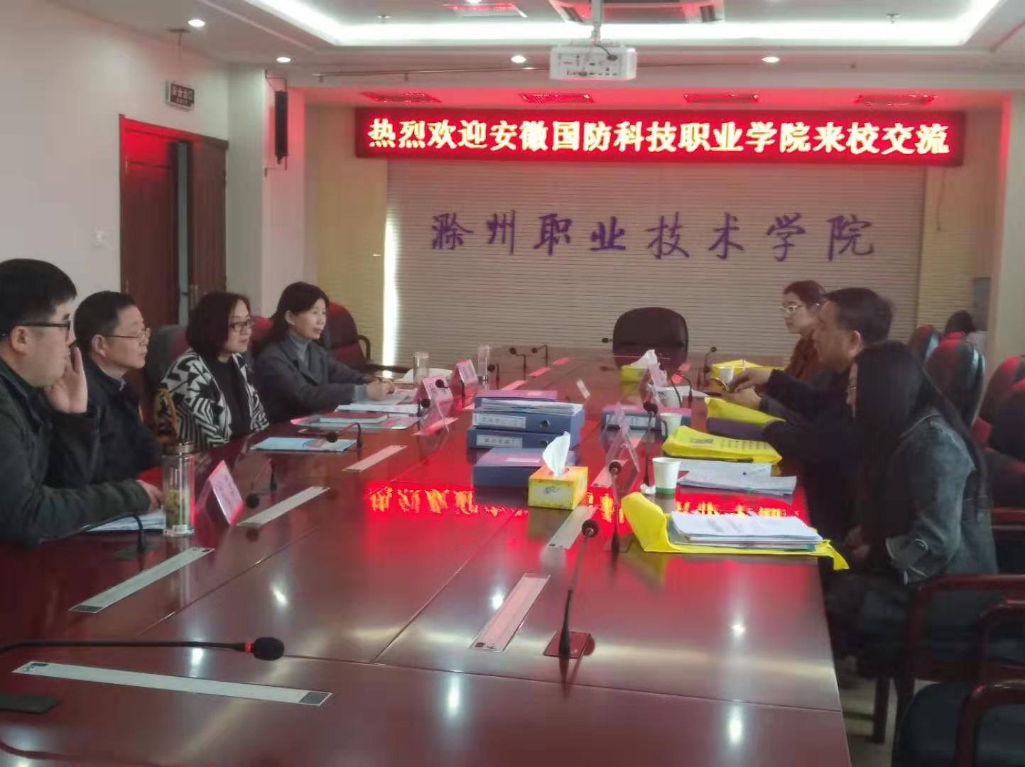 3月18日下午,安徽国防科技职业学院职教研究所所长陈小林、教务处(科研处)王志宏处长、副处长白斌丽与科研干事王云一行4人来365官网调研学习。交流座谈会在综合楼902会议室举行,365官网职研所副所长李爱红、科技成果转化中心主任刘青等4名科研处工作人员参加了会议。