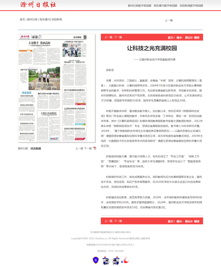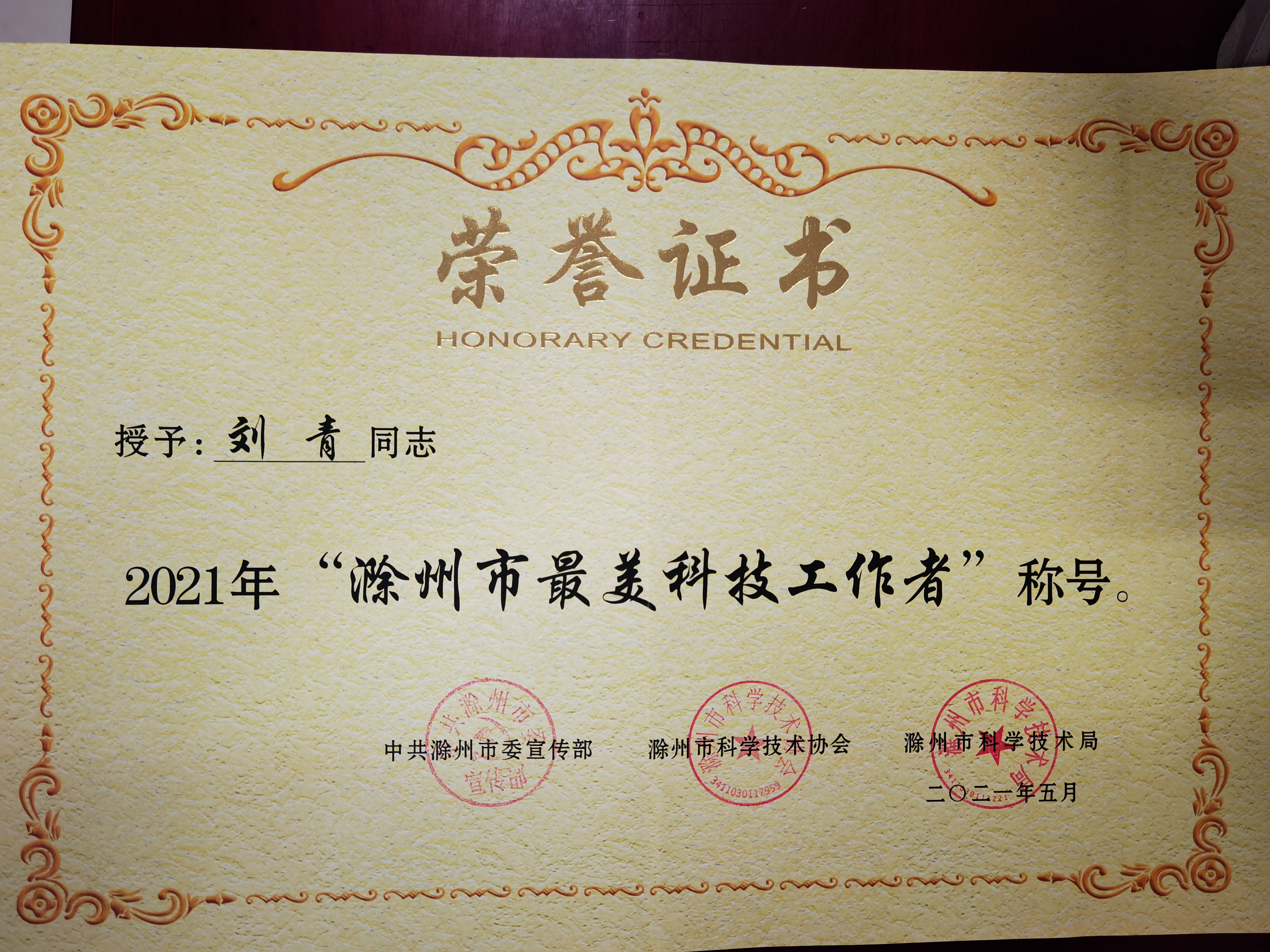 由中共滁州市委宣传部、滁州市科协和滁州市科技局组织的2021年度“滁州市最美科技工作者”评审结果近日揭晓,365官网信息工程学院刘青老师获评为2021年度“滁州市最美科技工作者。