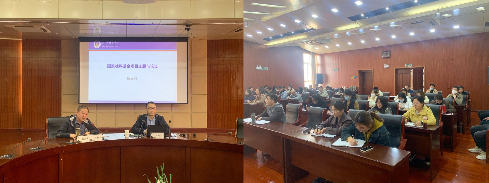 讲座结束,解教授还与现场教师进行了互动交流,针对提出的问题进行了耐心细致的解答。通过此次讲座,教师们对国家社科基金项目的选题与论证有了更加清晰的认识,对今后的申报工作具有重要的指导意义。