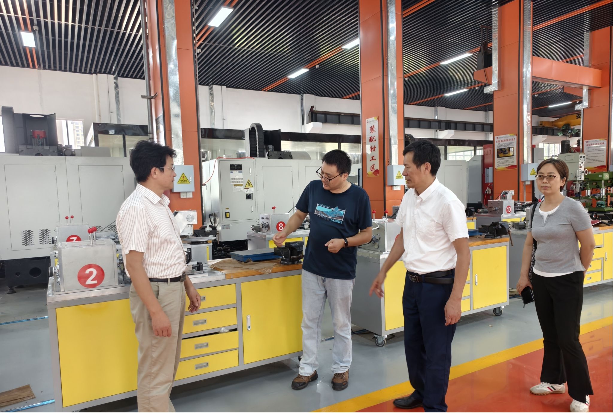 淦爱品一行在苏有良等陪同下,实地考察了学校智能制造实训基地、建筑工程实验实训中心。