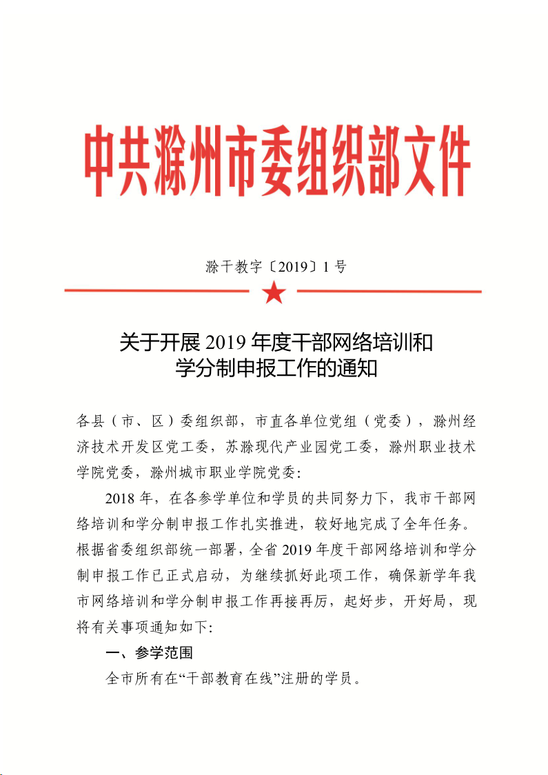 关于开展2019年度干部网络培训和学分制申报工作的通知